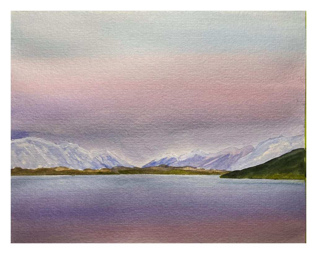 Dezadeash Lake, Yukon, is a wonderful spot. Be prepared to take a lot of photos on the way from town. I did this one of a fall morning for a challenge for one of the Facebook painting groups I belong to, aptly named the Mauvember challenge. This one is currently on its way to a new home in Newfoundland.