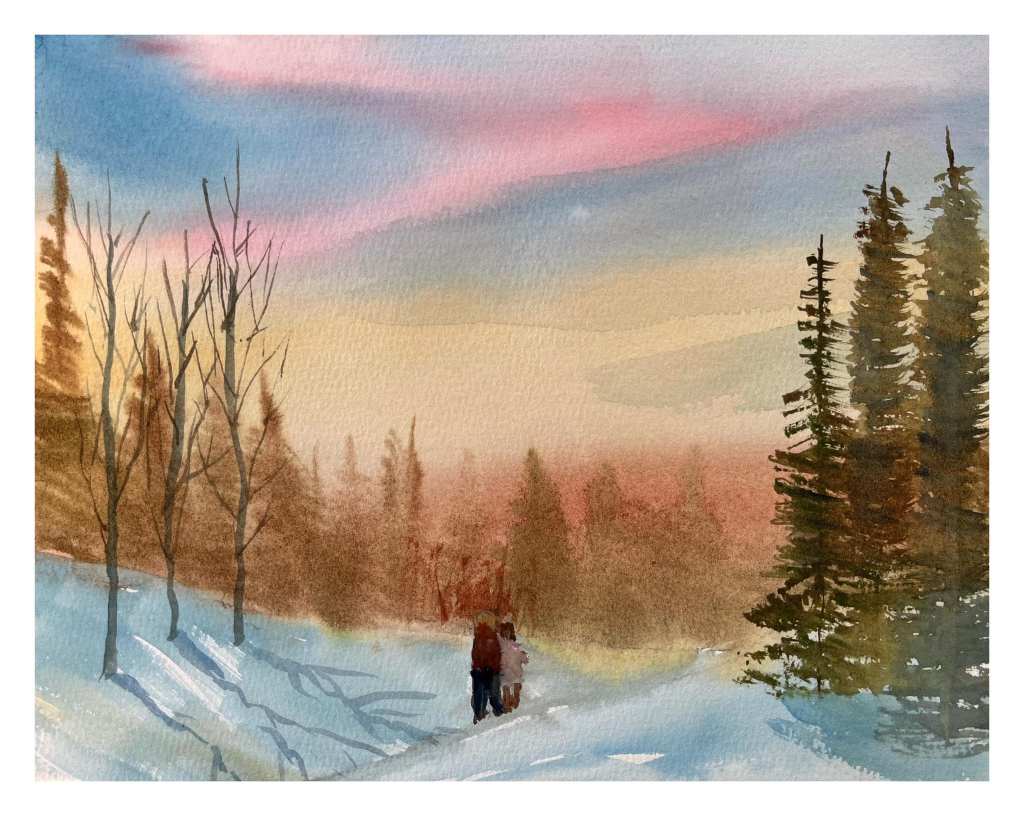 Winter wonderland. Watercolour on paper, 8×10 inches.