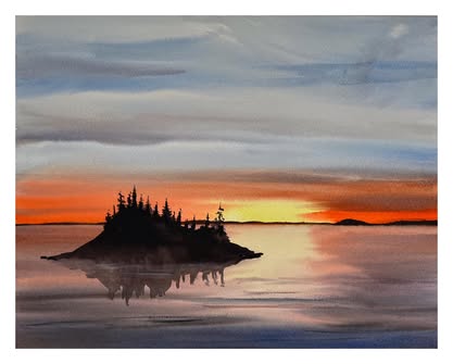 Sunset. Watercolour on paper, 12×12 inches. Private collection.