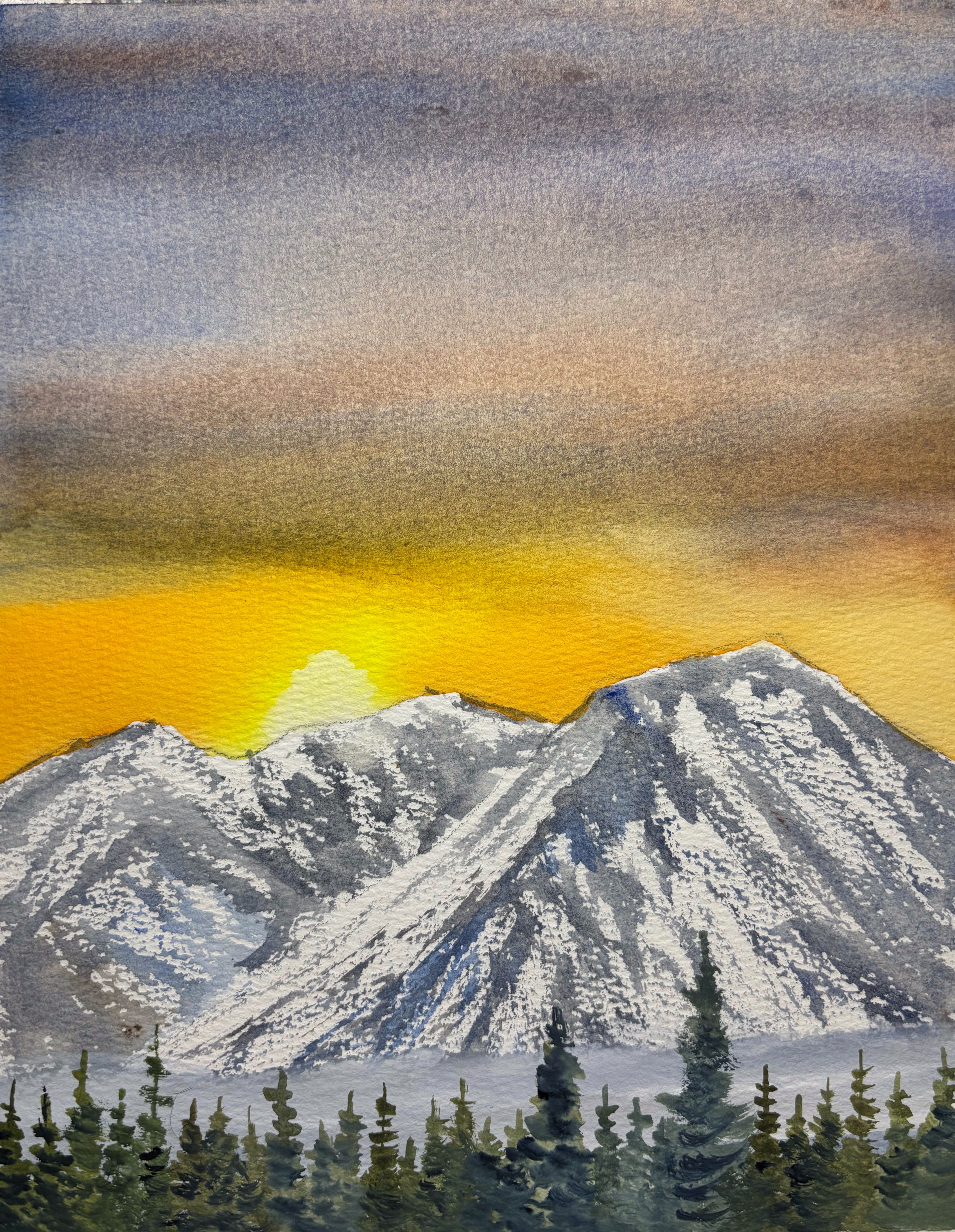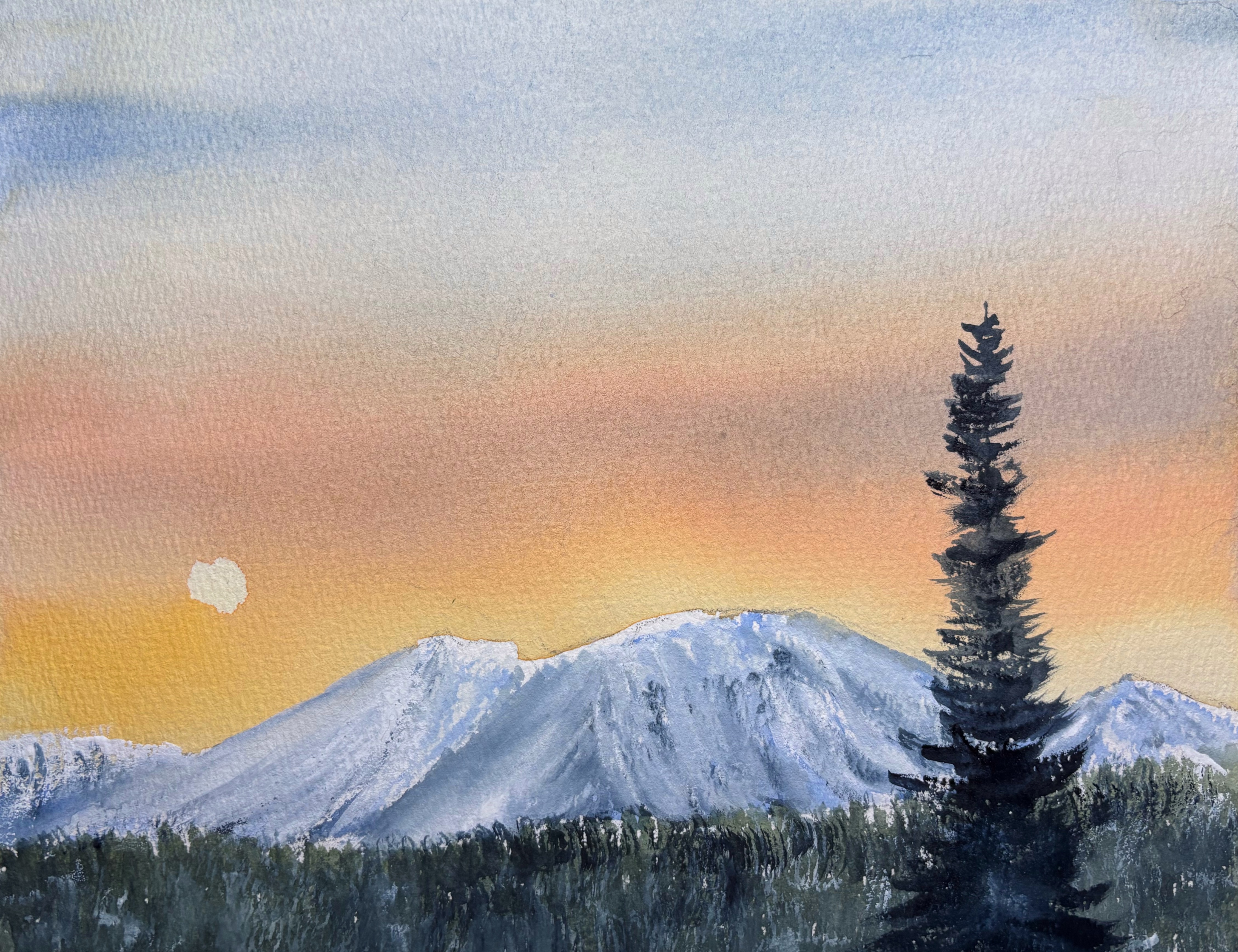 Sunset, Little Peak. Watercolour on paper, 8×10 inches.