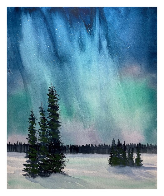 Just over a week to go until my solo exhibit opens on July 4th. This one, themed Against the Sky, is an homage to the Yukon sky, a constantly changing milieu of light and colour and is dedicated to the Yukon sky, with its subdued pastels in winter, its bright colours in summer, and its limitless array of sunsets and sunrises.