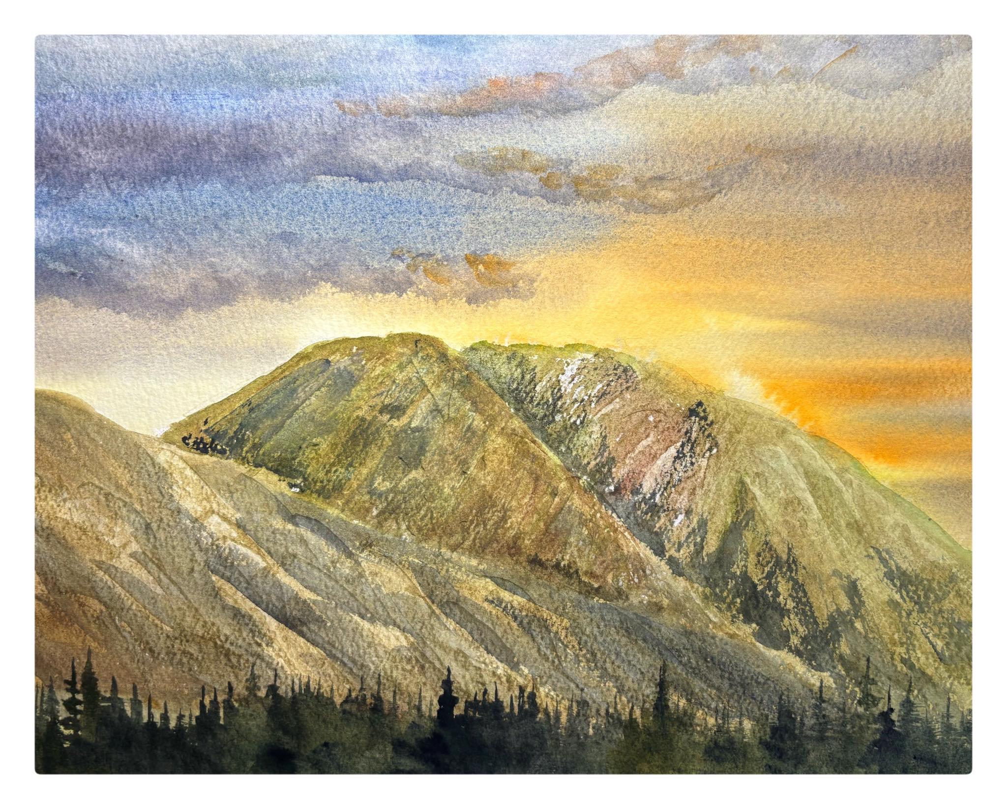Golden Horn Mountain. Watercolour on paper, 11×14 inches.
