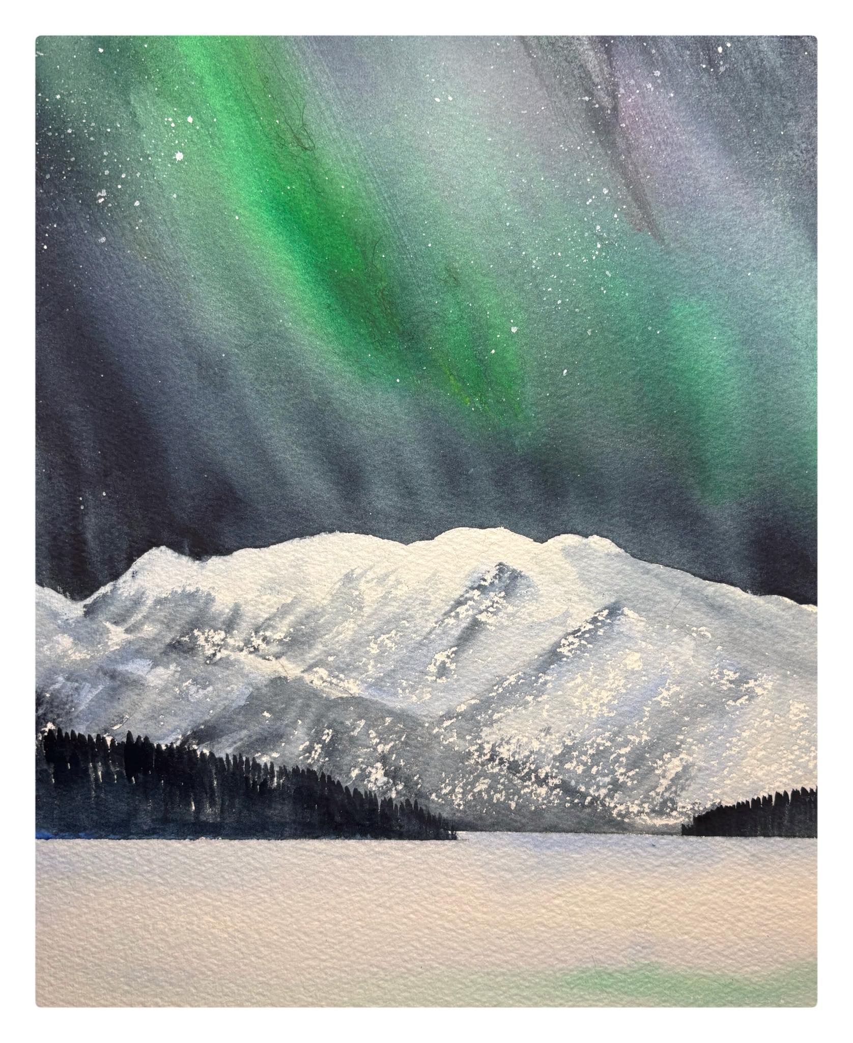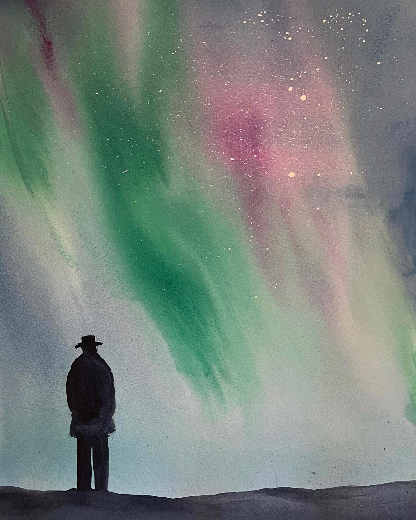 Solstice midnight. Watercolour on paper, 11×14 inches.