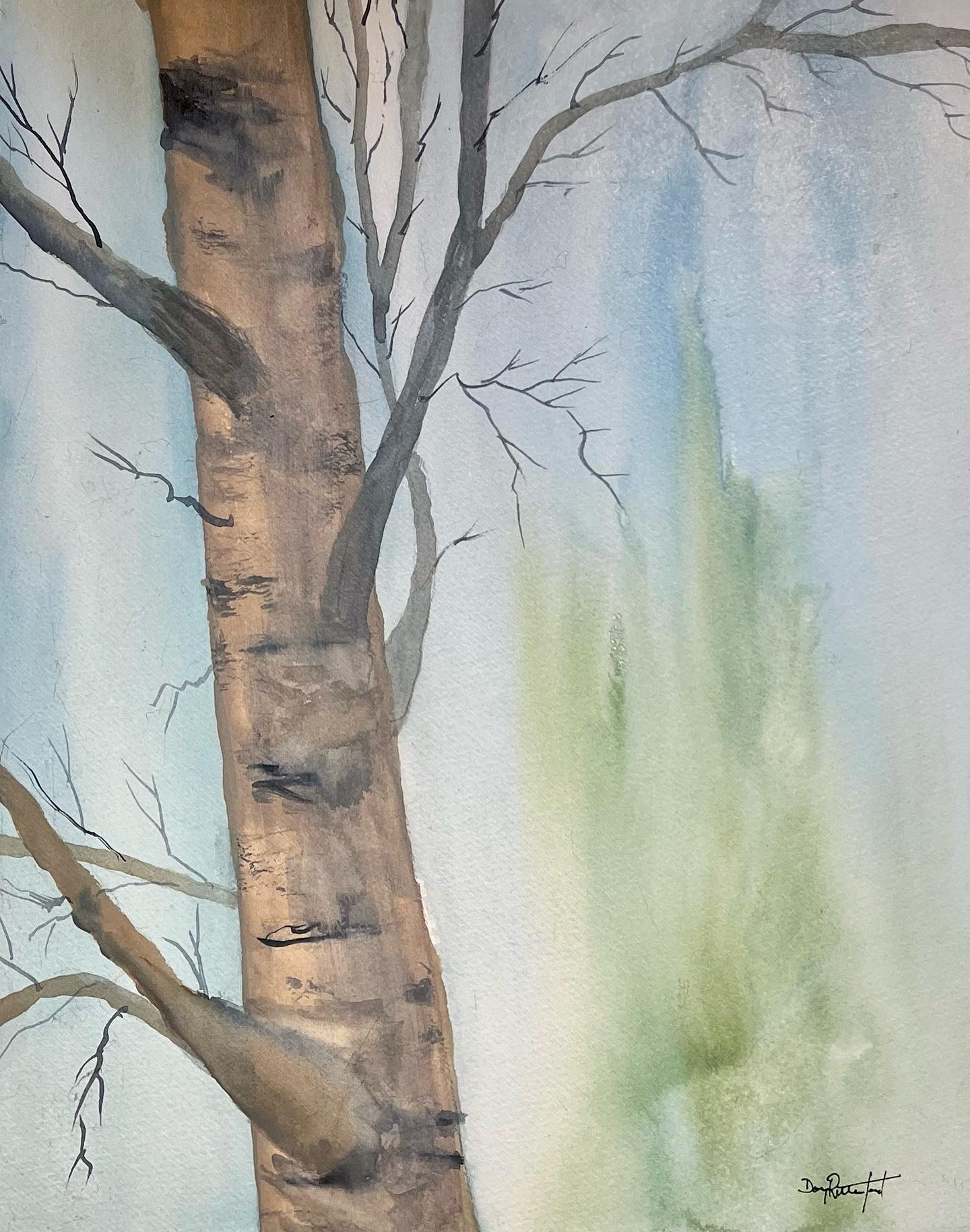 Poplar. Watercolour on paper on wooden cradle, 11×14 inches.
