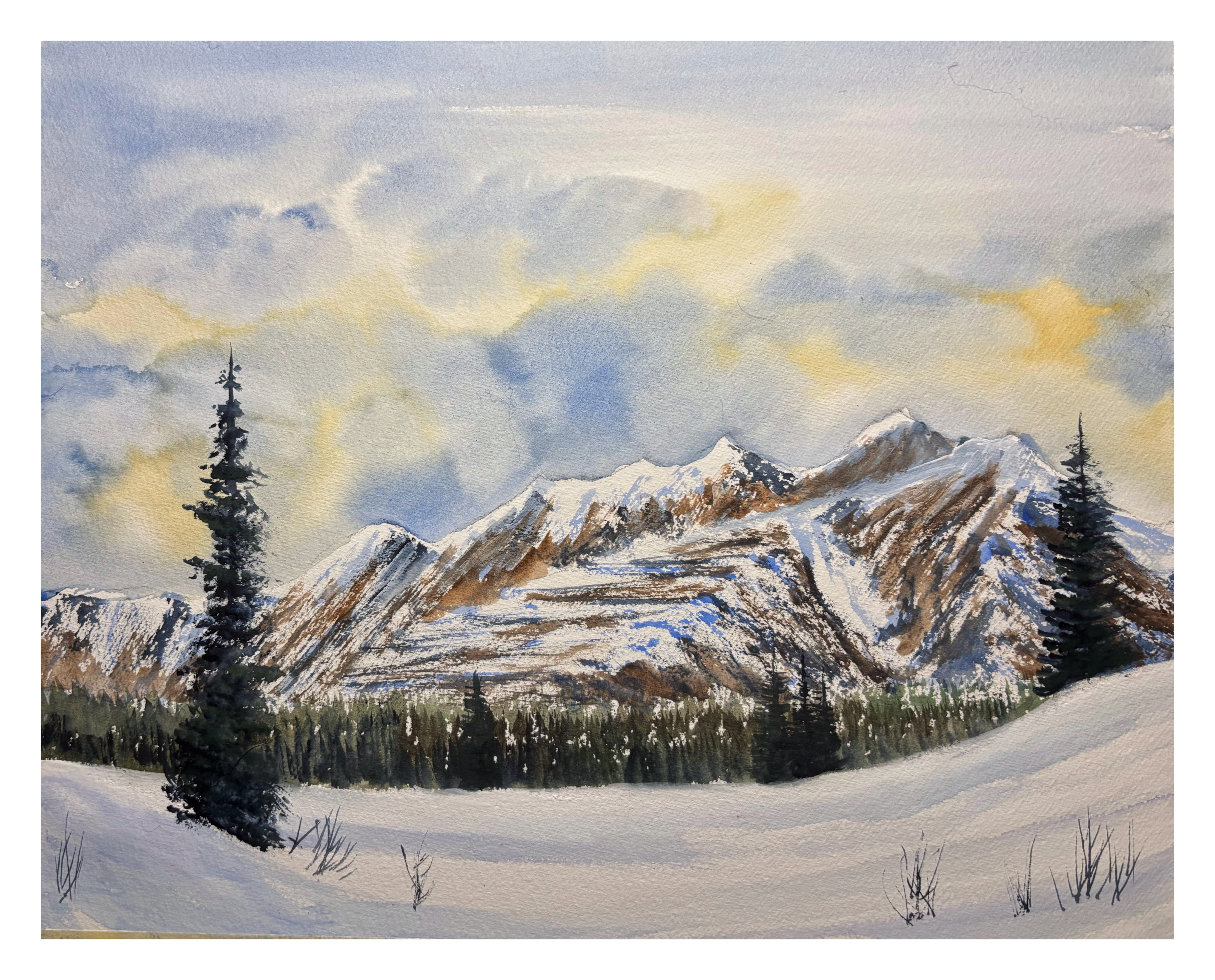 Approaching snow, Montana Mountain. Watercolour on paper, 11×14 inches.