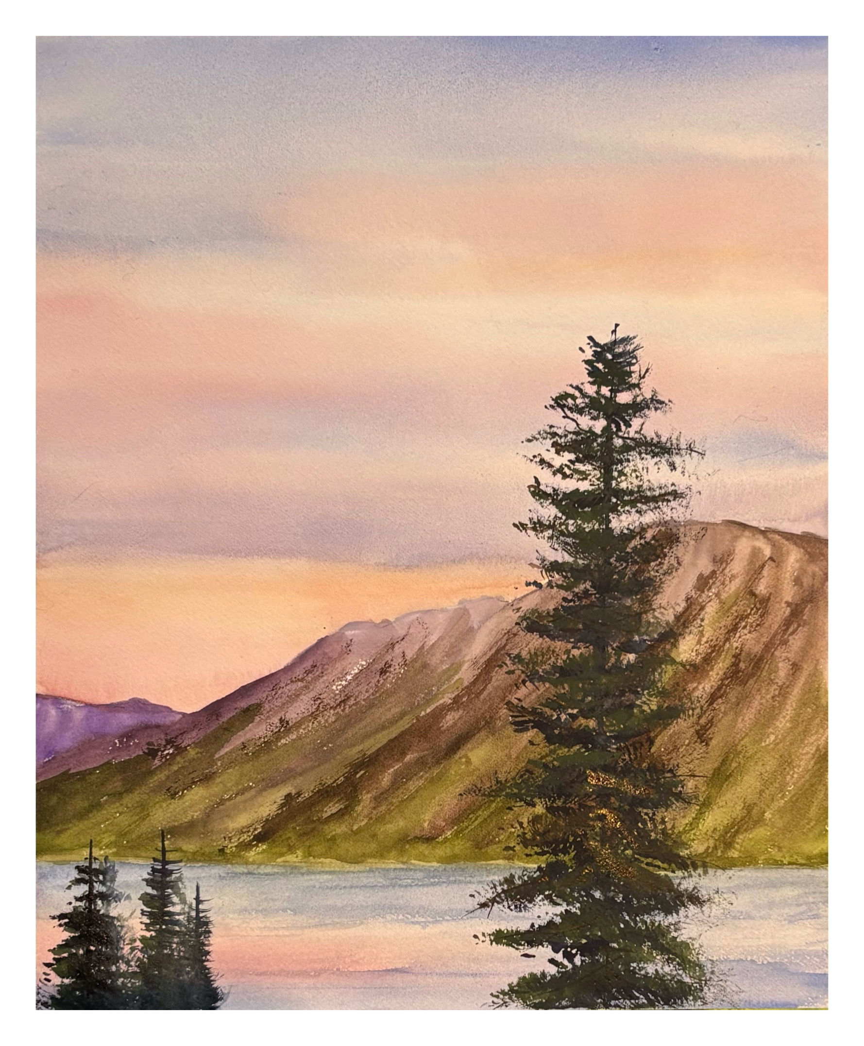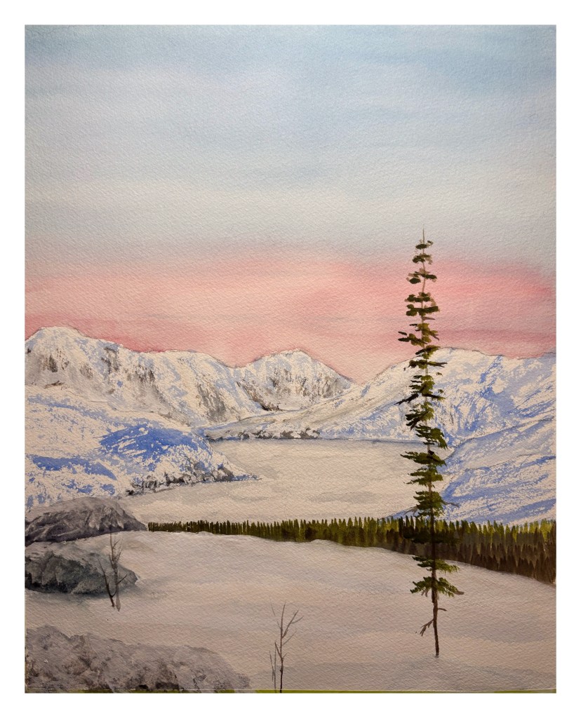 Summit Lake. Watercolour on paper, 11×14 inches.