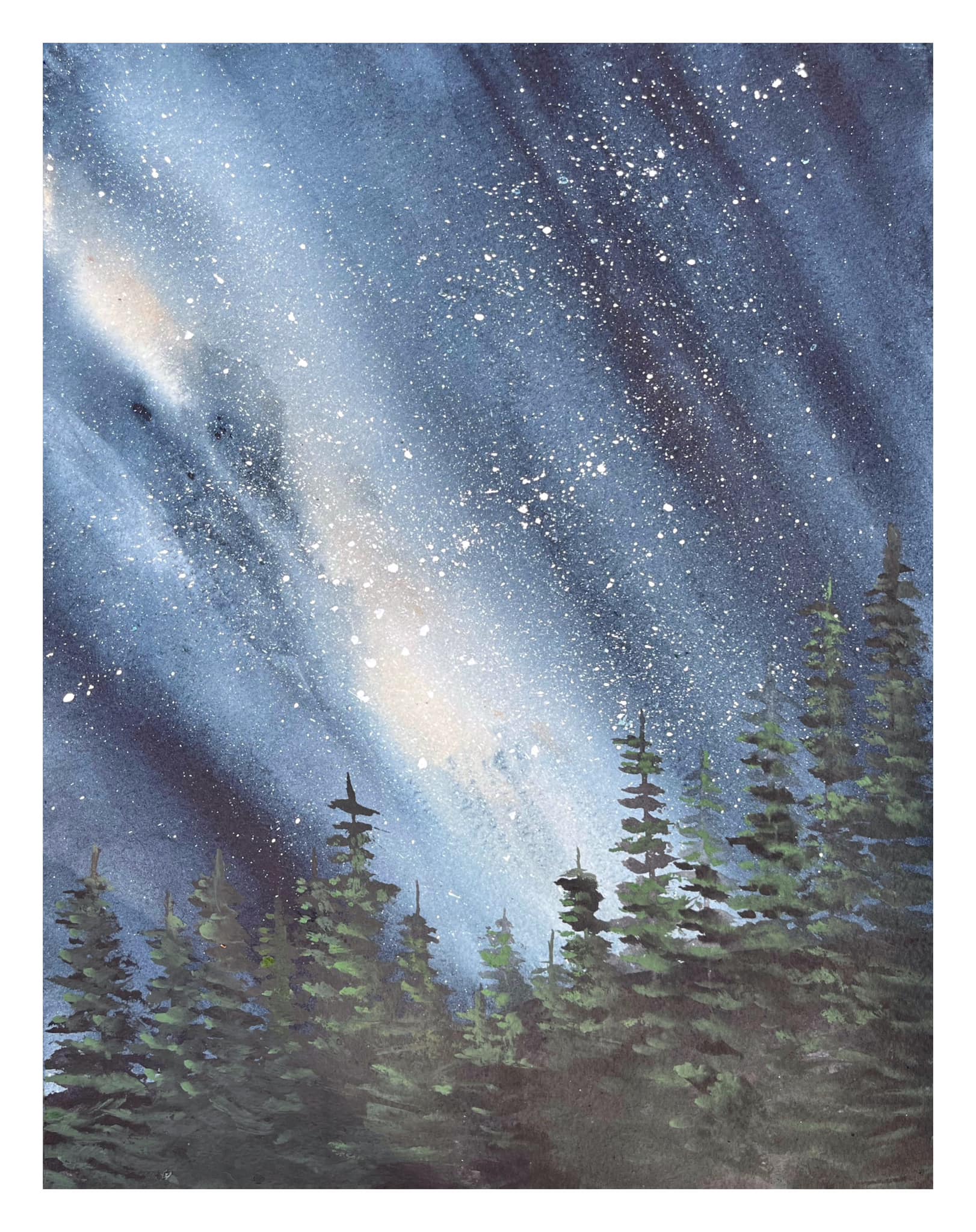 Boreal night. Watercolour on paper, 11×14 inches.
