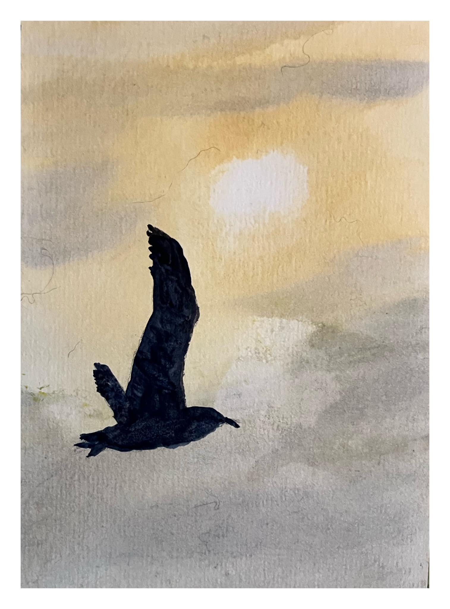 Gull at midnight. Watercolour on paper, 11×14 inches (currently available at Arts Underground gallery).