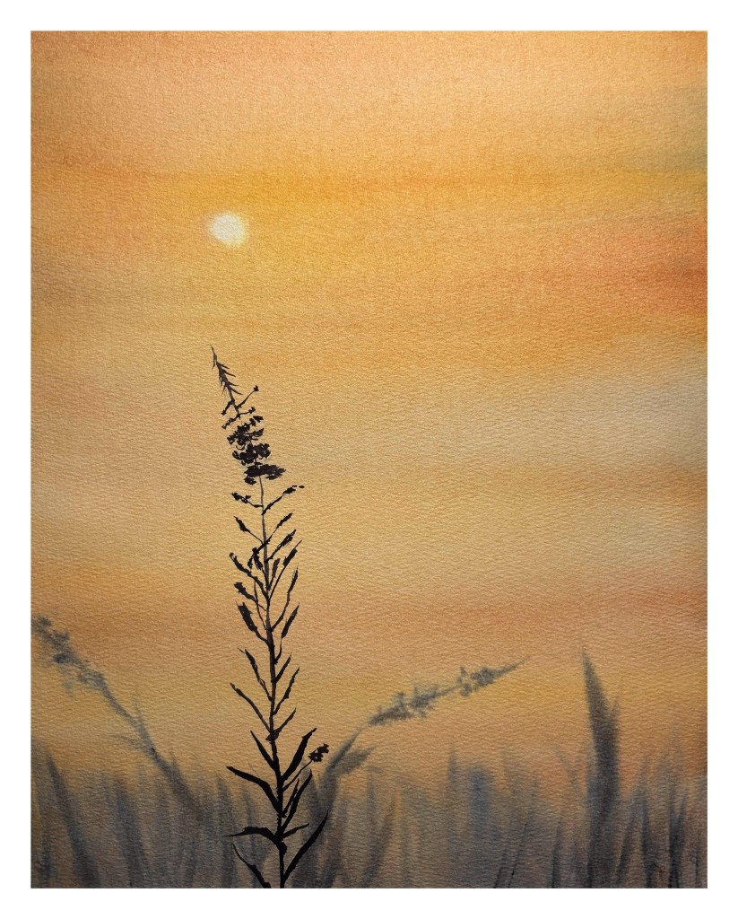 Fireweed. Watercolour on paper, 11×14 inches. (currently available at Yukon Artists @ Work gallery.)