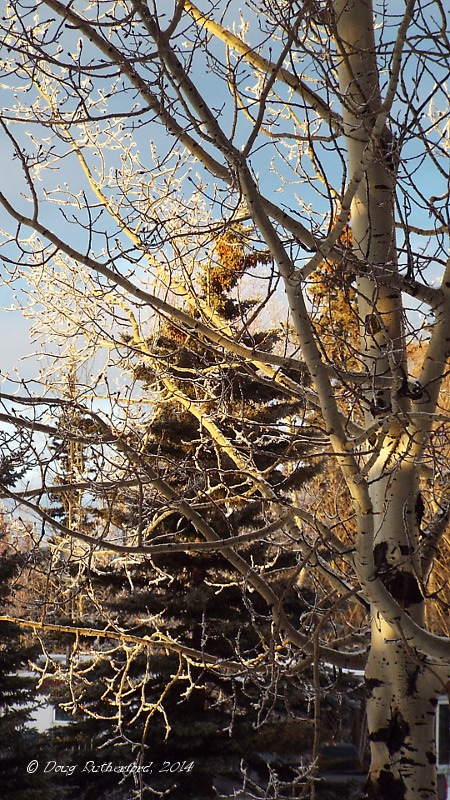 The advantage of the warm weather has been that it hasn’t been quite as dry as usual. My sinuses and hide are both quite grateful over that, by the way. And, another advantage has been that when the temperature eventually did drop south of freezing, we get a nice freezing fog and hoarfrost.
