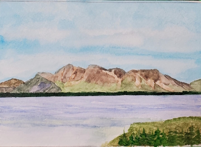 After supper, I dropped in on our friends and after a bit, the wind did die down enough to try fishing. It was still a bit bumpy, although we kept to the leeward side of the lake. However, as the evening went on, it became obvious the wind and the lake were going to die off a bit. Neither of us had any luck, even though we trolled for a while and then tried or hand at casting for pike. However, we shall see what tomorrow offers, since it looks like the weather will turn nice tomorrow morning,