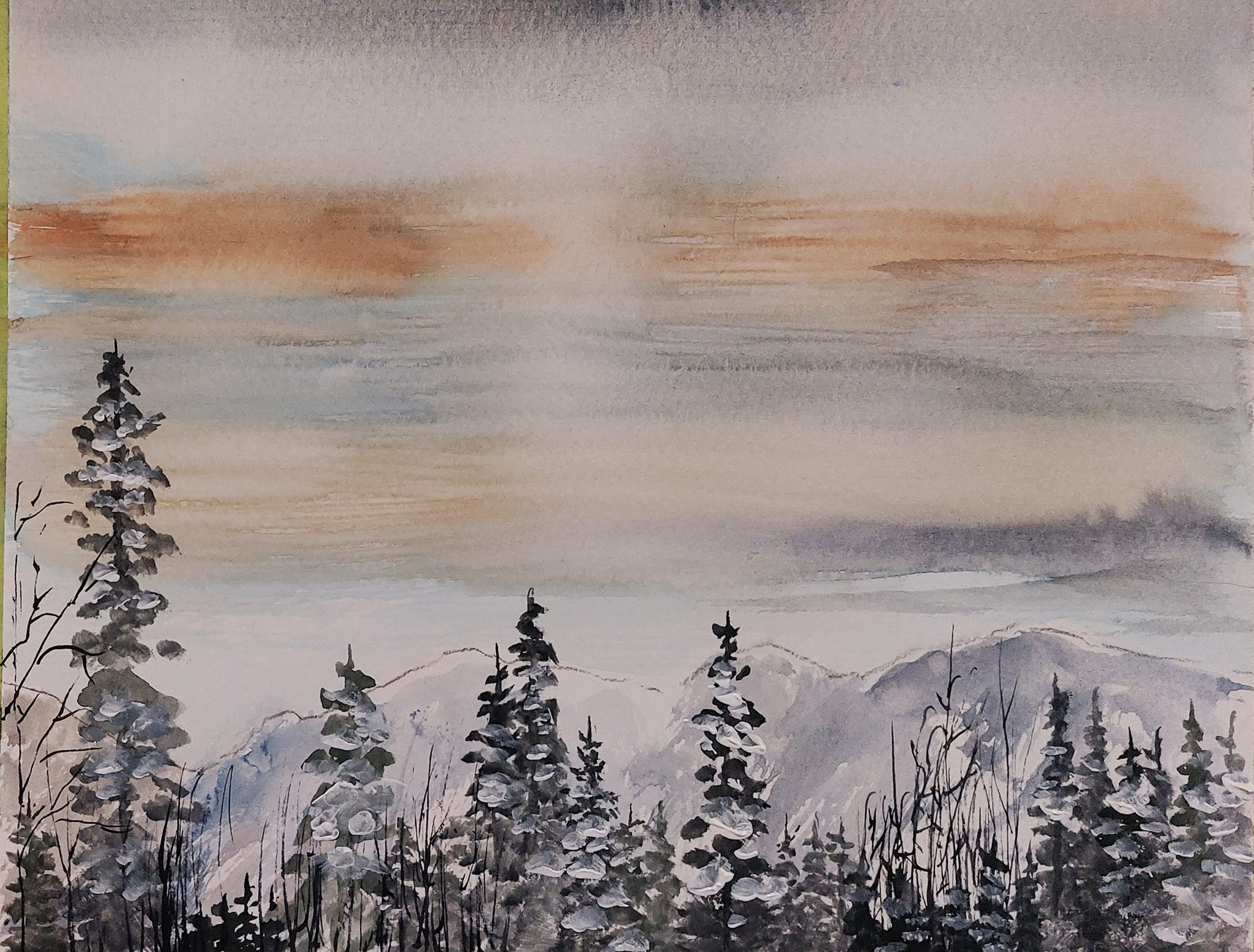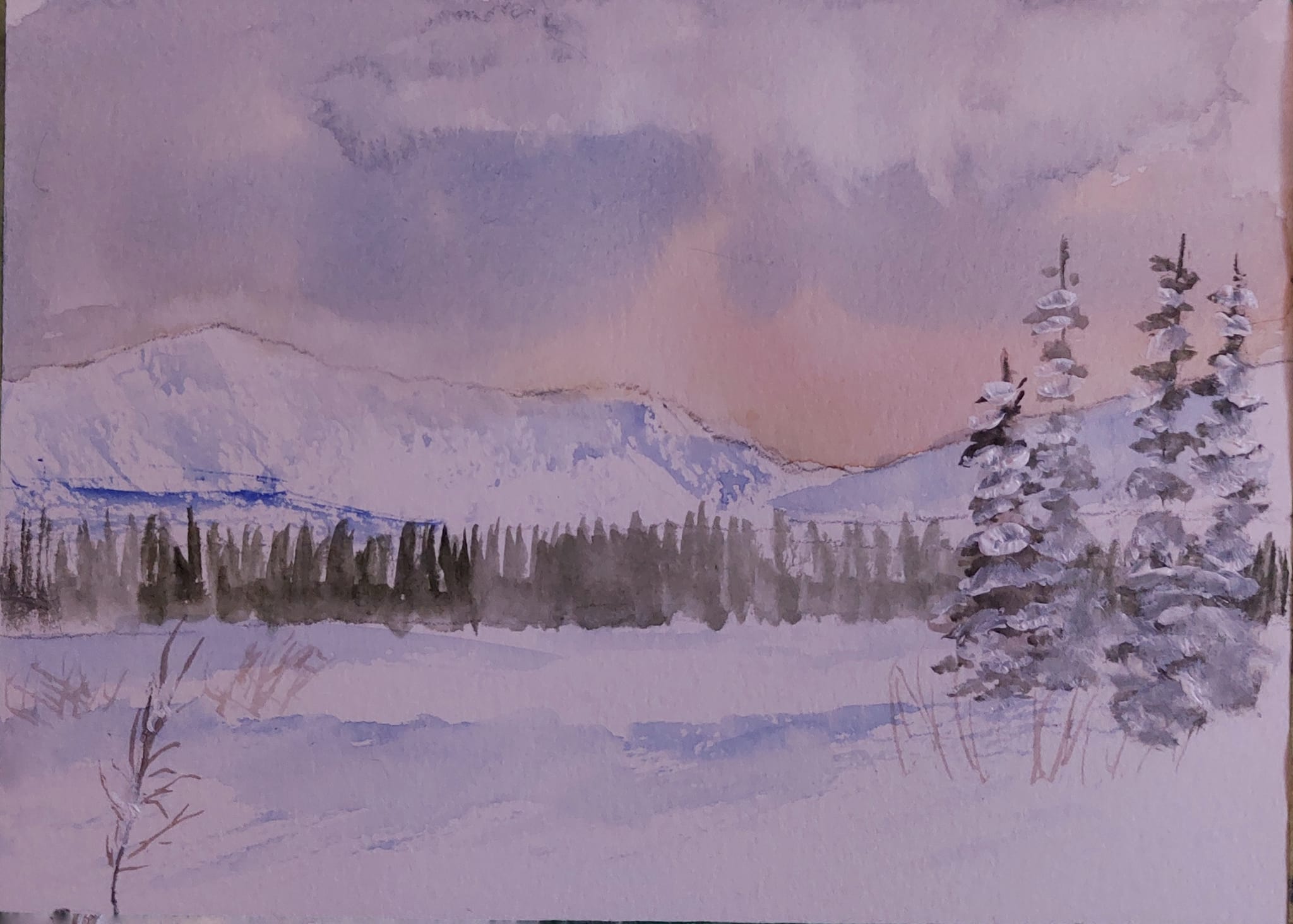 I did a little count and my streak of painting winter scenes is now at 31 days. Here are a few more of my winter scenes.
